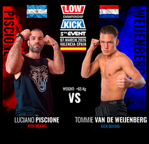 Seguimos cerrando una cartelera internacional de alto nivel para el próximo 7 de marzo en Valencia (España), donde Low Kick Championship volverá a ofrecer una noche cargada de acción, intensidad y combates de primer nivel.